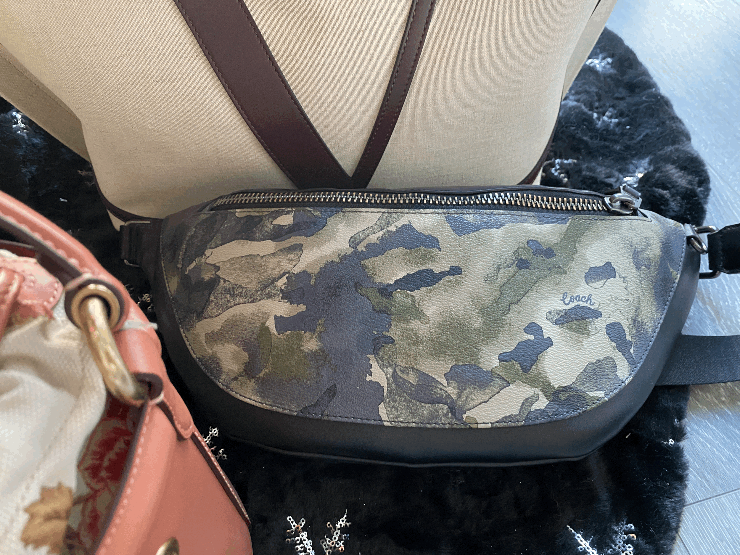 Coach Watercolor Belt bag: When the pandemic started I needed to be hands free as much as possible and I needed a bag that would help me accomplish that. Coach outlet was having a great sale and I was able to purchase a cute belt bag (from the mens section) at a great price. The bag is at a great size and the colors go with just about everything. I still use that bag on and off when I feel like it.
