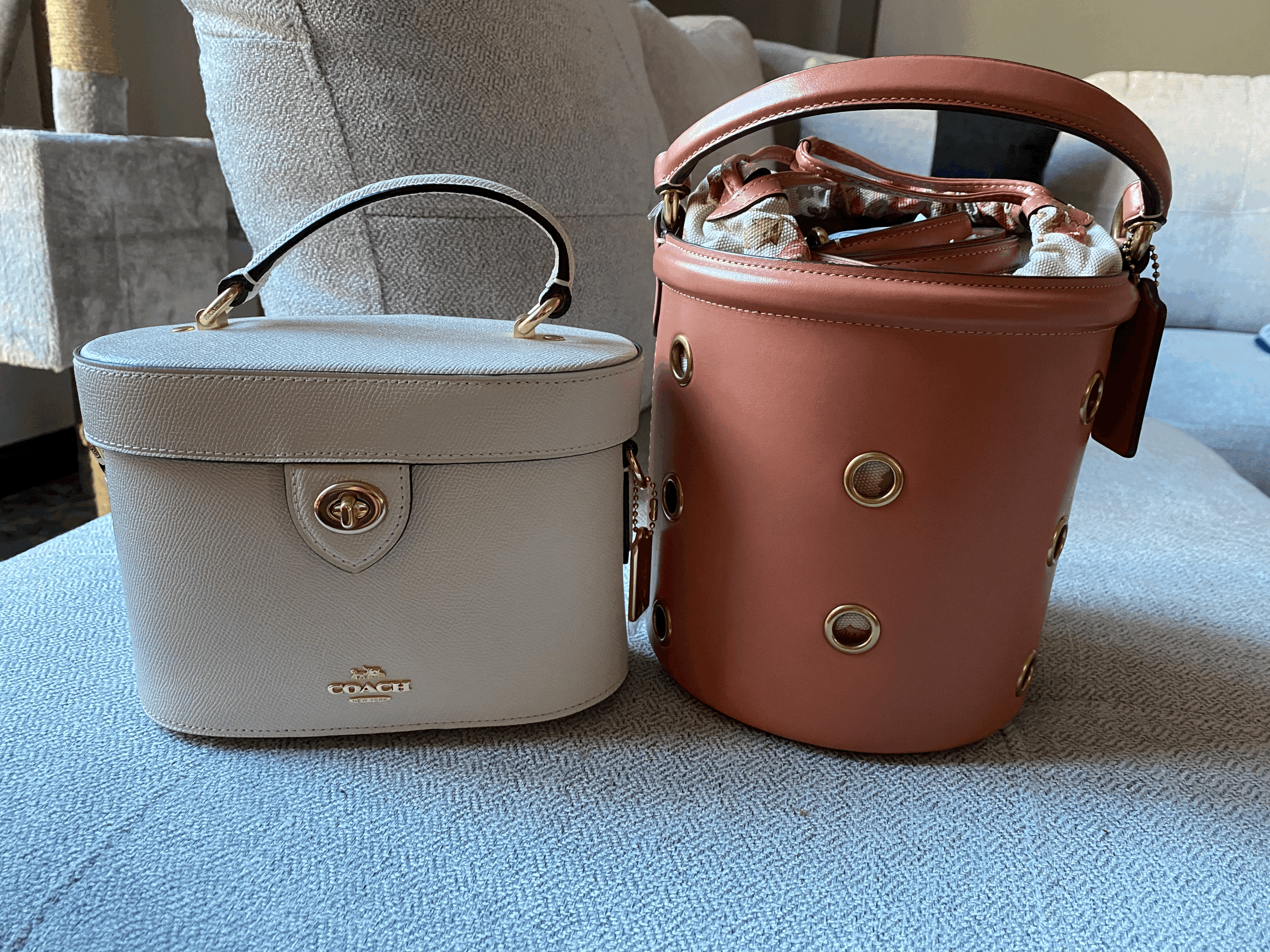 Coach bags- Coach outlet was having another sale and I went a little crazy and purchased 2 small bags. Now normally I do not like to purchase small bags but when I saw these bags I lost it and ended up buying like a crazy person. I have not carried either one yet and I have moments that I think about not keeping them but they are totally different for my collection but to be honest I do love them both. They are not my usual tote, or hobo bags that a normally carry but I think they are a great addition for those days or nights that I just want something small to carry.